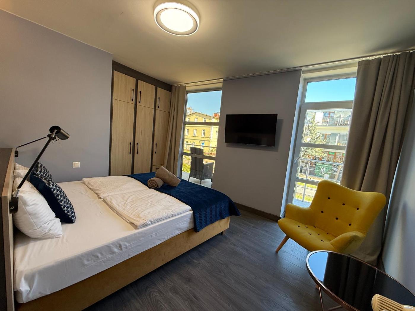 Pokój dwuosobowy. Featuring free toiletries and bathrobes, this double room includes a private bathroom with a shower and a hairdryer. This double room has a tea and coffee maker, a wardrobe, a flat-screen TV and a balcony. The unit has 1 bed. Powierzchnia pokoju ok.: 17 mkw. ;